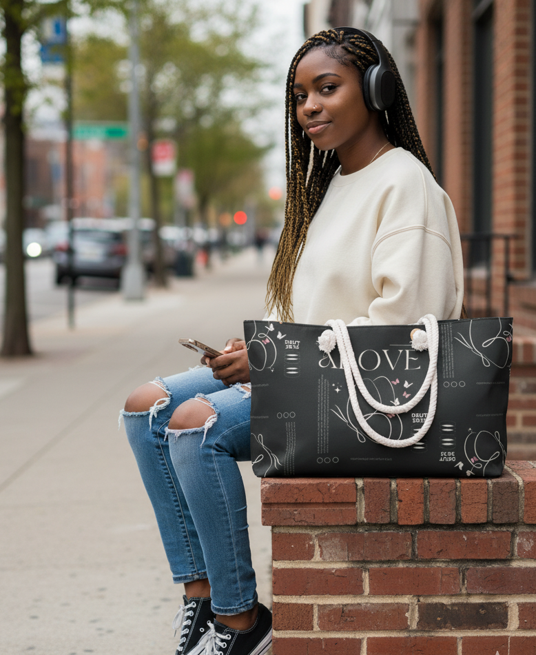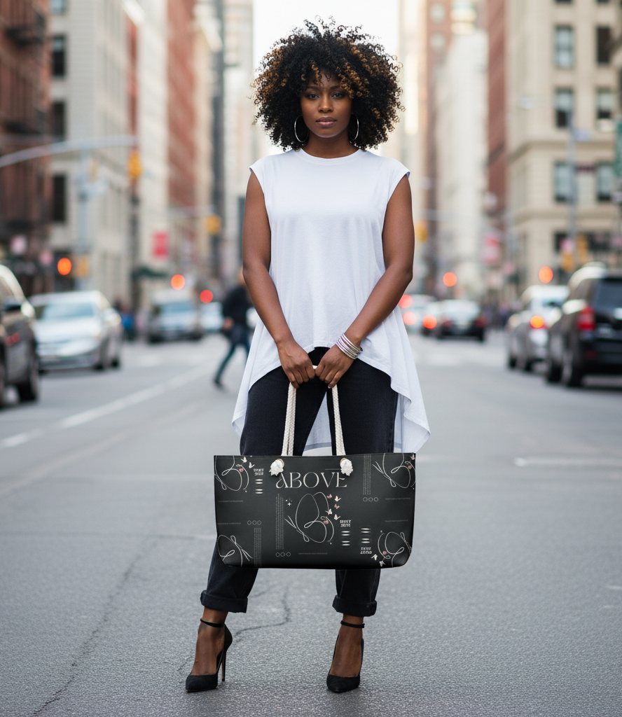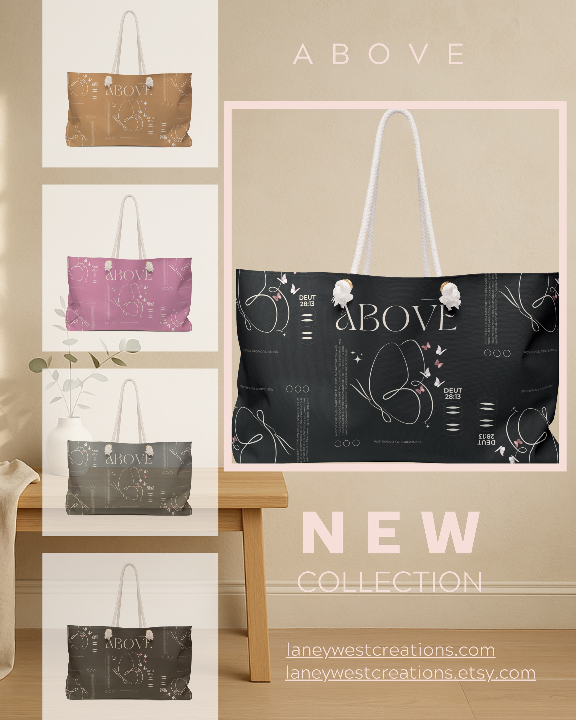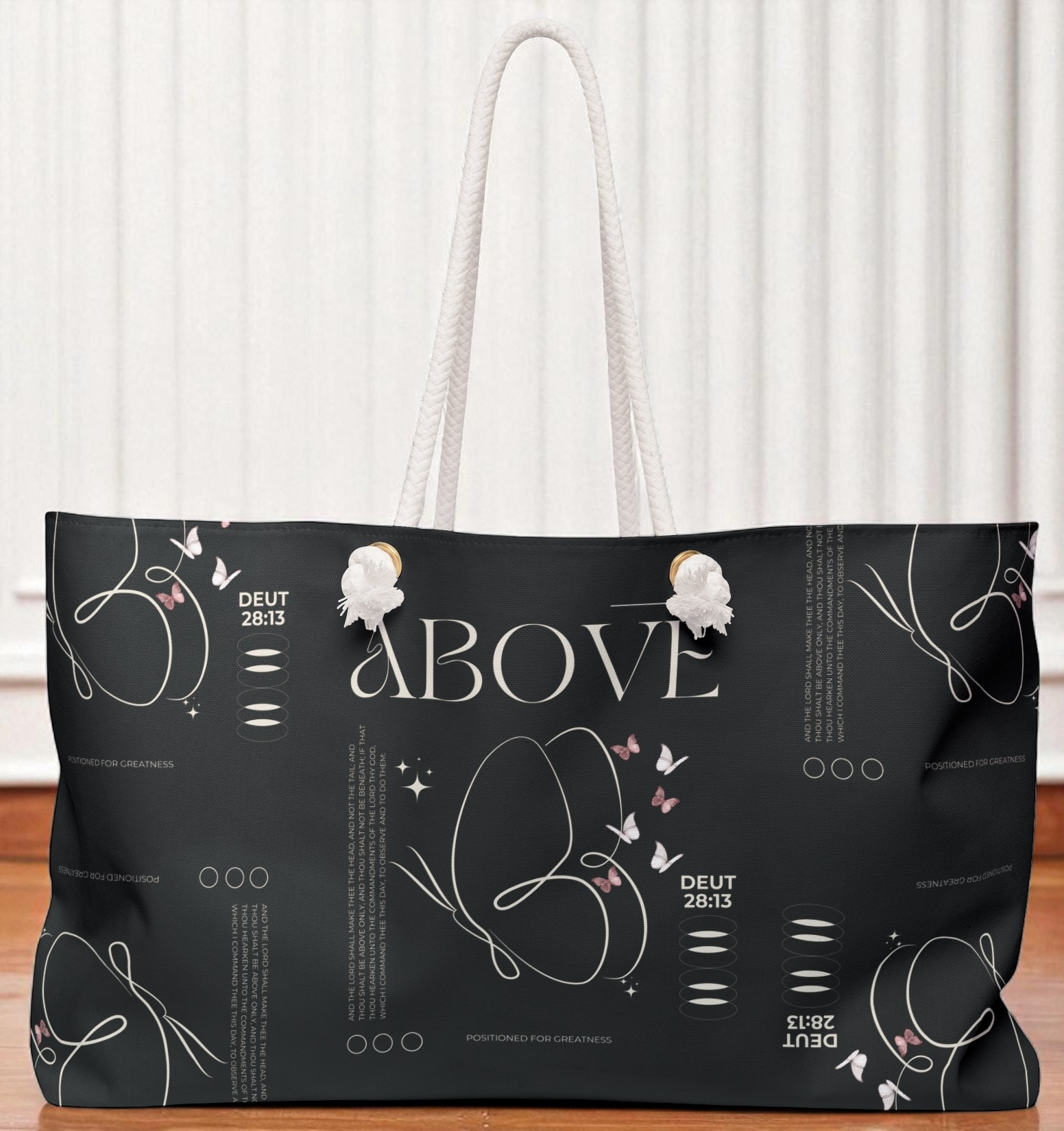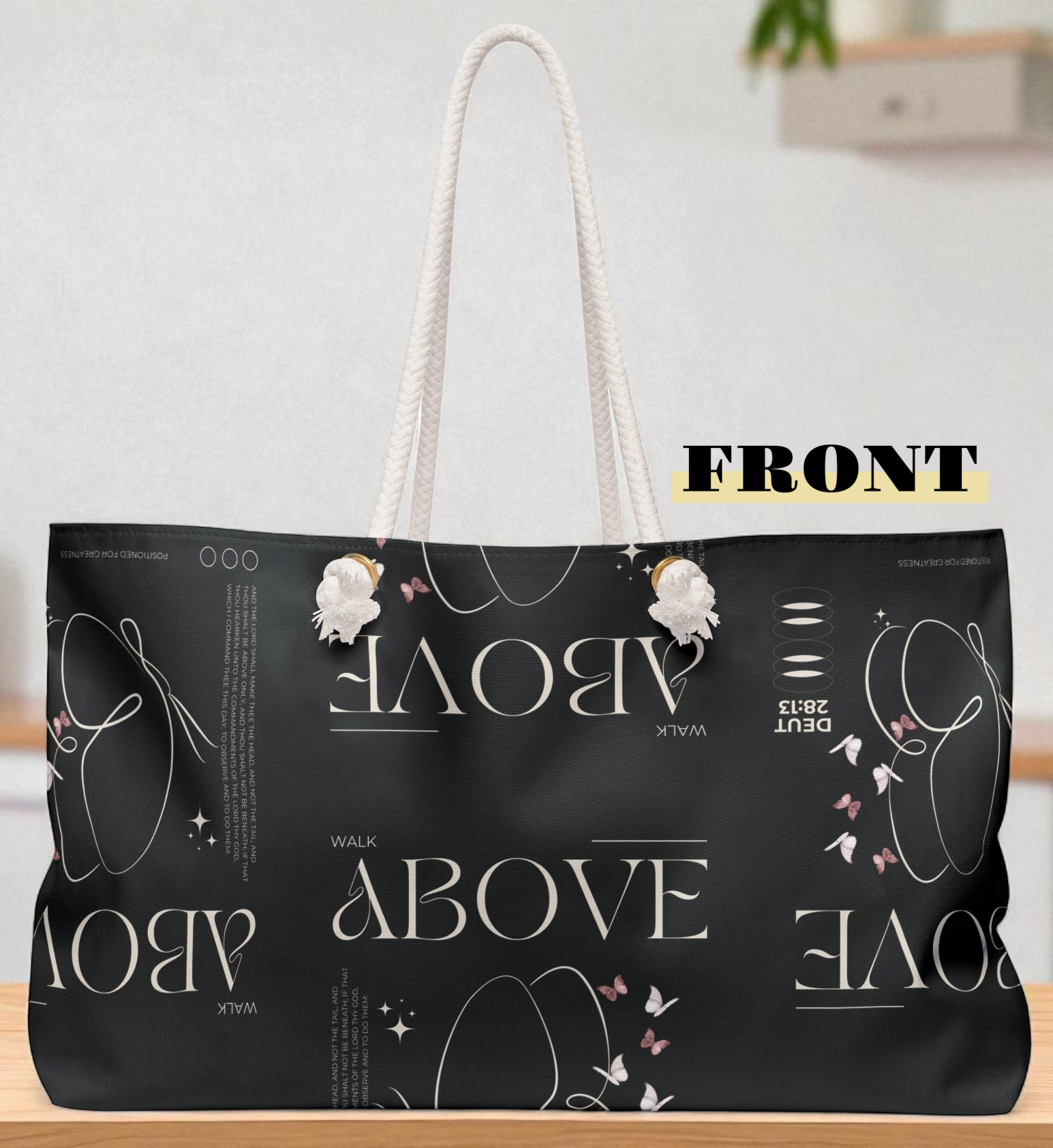 Sleek and oversized without the fuss, this is the tote that moves how you move—office, airport, coffee line, late plans. The butterfly line art keeps it fresh, and the subtle note on the print — walk above, not beneath (Deut. 28:13) — adds quiet confidence and a reminder to move with purpose.